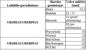 Pridedama lentelė padės pasirinkti tinkamą laikiklį pagal skardos tipą.